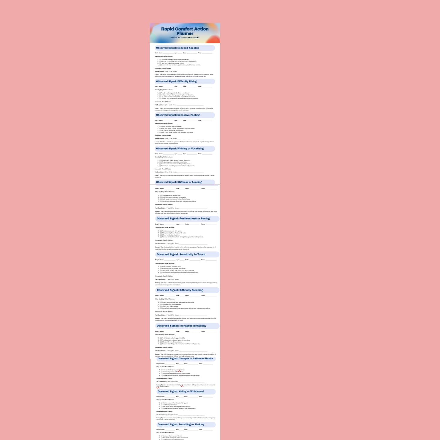 This ensures that pain detection is not just awareness — but effective, organized action to maintain your dog’s comfort and well-being.